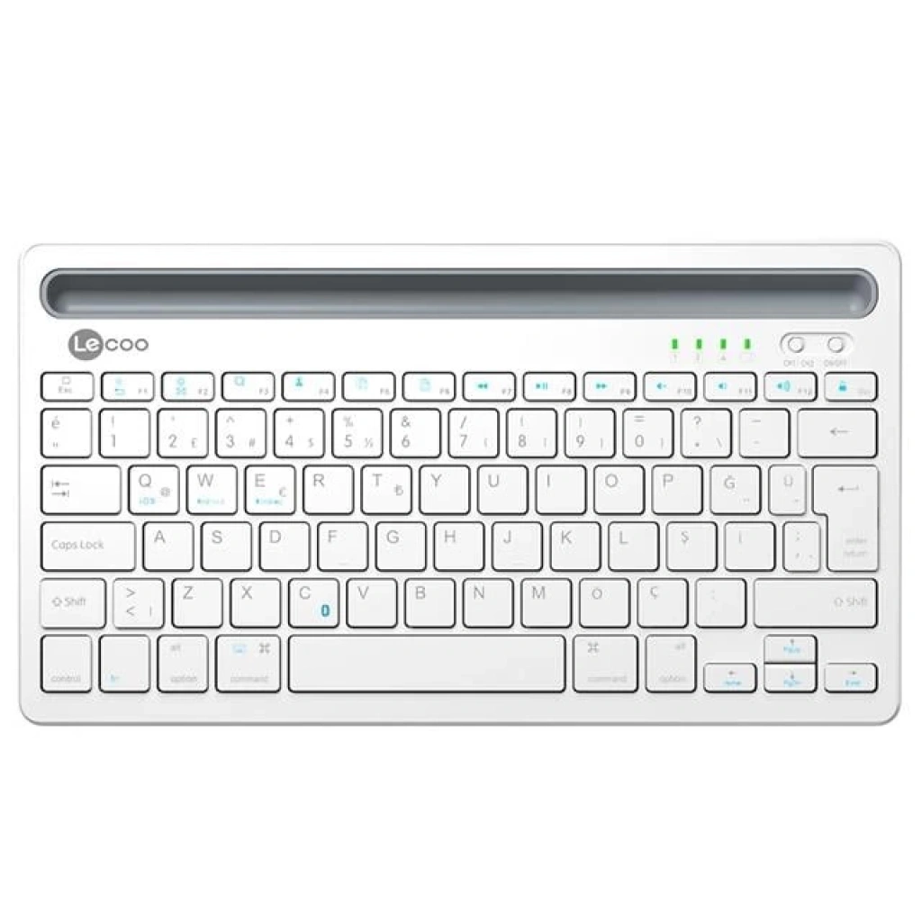 Lenovo Lecoo BK100 Bluetooth V3.0 Çoklu Cihaz Uyumlu Şarj Edilebilir Kablosuz Beyaz Türkçe Q Klavye, sade ve şık tasarıma sahiptir. Aynı anda iki cihazı destekleyen ve aynı anda 2 cihazı hızlı bir şekilde değiştirerek kullanabileceğiniz mini bir Bluetooth klavyedir. Windows, Mac, Android veya iOS gibi birden fazla işletim sistemiyle uyumlu çalışmaktadır. Rahat ve duyarlı, hızlı tepkiye sahip, kısa vuruş özellikli şık tuşlarıyla uzun süreli kullanım için uygundur.