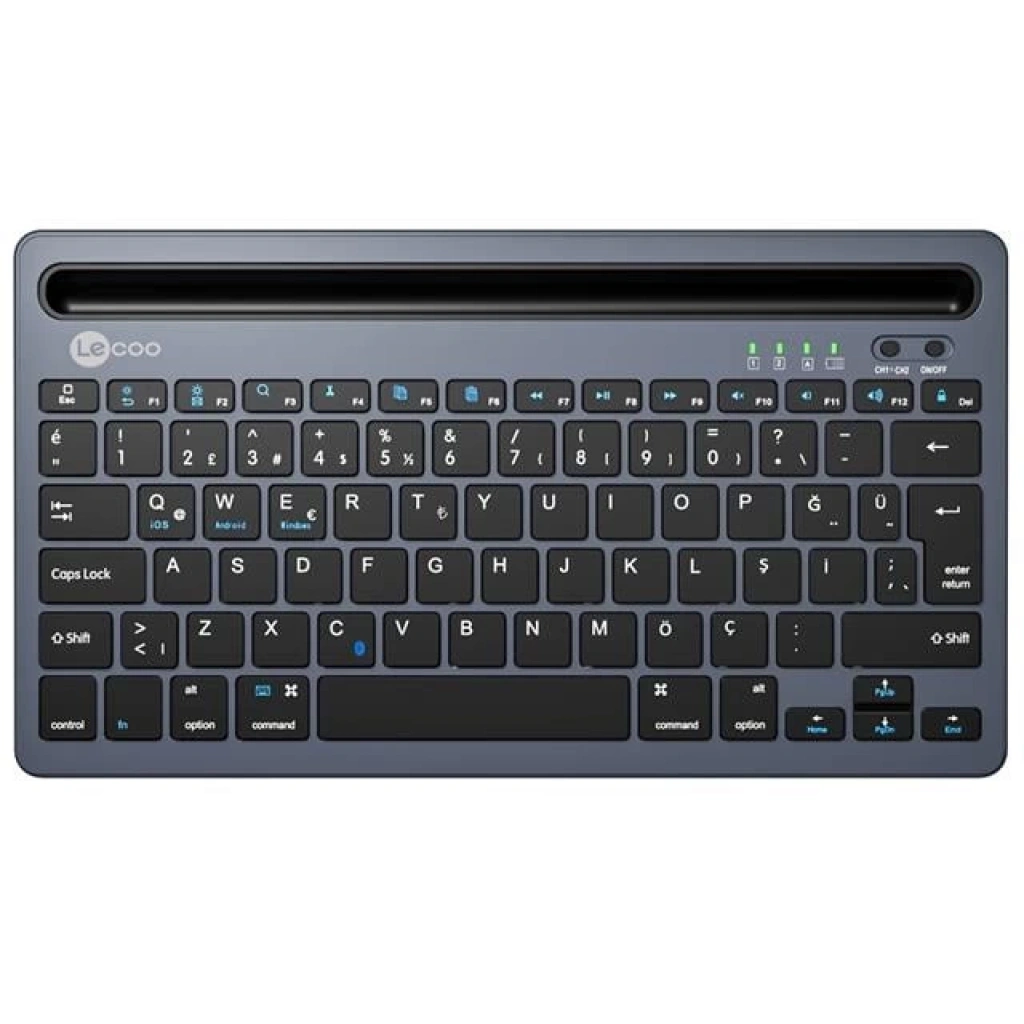 Lenovo Lecoo BK100 Bluetooth V3.0 Çoklu Cihaz Uyumlu Şarj Edilebilir Kablosuz Gri Türkçe Q Klavye, sade ve şık tasarıma sahiptir. Aynı anda iki cihazı destekleyen ve aynı anda 2 cihazı hızlı bir şekilde değiştirerek kullanabileceğiniz mini bir Bluetooth klavyedir. Windows, Mac, Android veya iOS gibi birden fazla işletim sistemiyle uyumlu çalışmaktadır. Rahat ve duyarlı, hızlı tepkiye sahip, kısa vuruş özellikli şık tuşlarıyla uzun süreli kullanım için uygundur.