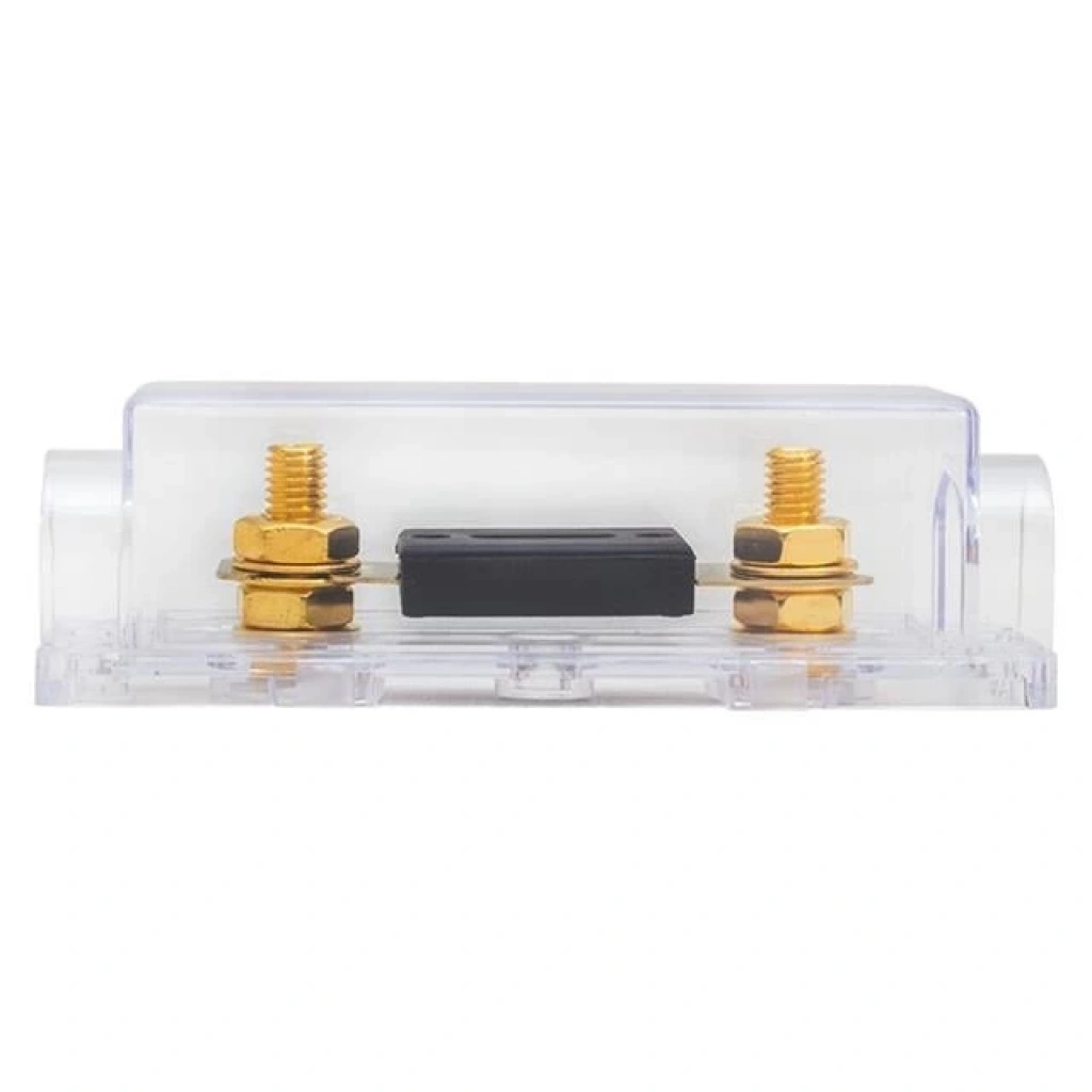 Powermaster PM-18359 Anfi Sigorta Yuvası 120 Amper Sigortalı; anfi cihazlarında meydana gelebilecek akım artışlarına ve arızalara karşı cihazı koruyan bir güvenlik elemanıdır. 120 Amper Sigortalı olan Powermaster PM-18359 Anfi Sigorta Yuvası 120*40*30 Mm boyutlarında 104.80 Gr. ağırlığındadır.