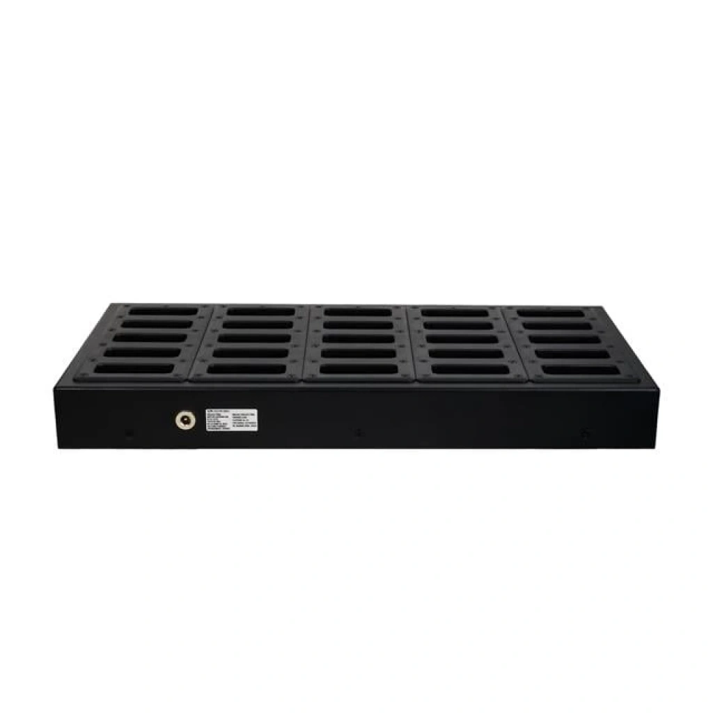 Bu şarj yuvası, Hello marka telsiz cihazlarınızı aynı anda 25 adet olmak üzere toplu bir şekilde şarj etmenizi sağlar. Böylece uzun süren etkinliklerde veya yoğun kullanımda şarjı azalan cihazları hızlıca şarj ederek iletişim kesintisi yaşamadan devam edebilirsiniz.